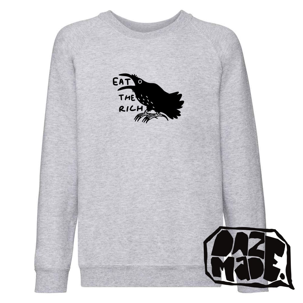 Tell me I’m pretty dinosaur hand printed onto a heather grey jumper.